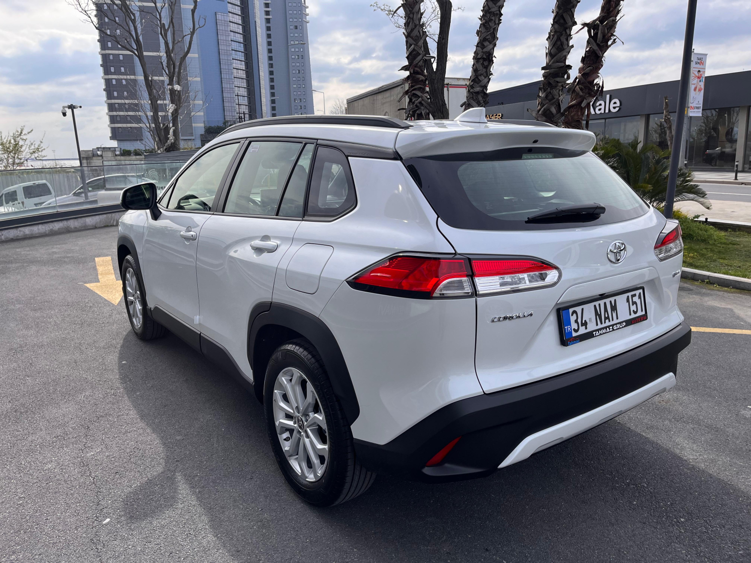 Corolla Cross, Toyota'nın tasarım dilini yansıtan cesur hatlara ve dinamik bir ön ızgaraya sahip. Aracın agresif çamurlukları ve belirgin hatları, ona güçlü bir duruş kazandırırken, aerodinamik tasarım da yakıt verimliliğini artırmaya yardımcı oluyor. LED farlar ve geniş ön ızgara, Corolla Cross’a modern ve sofistike bir görünüm katıyor.